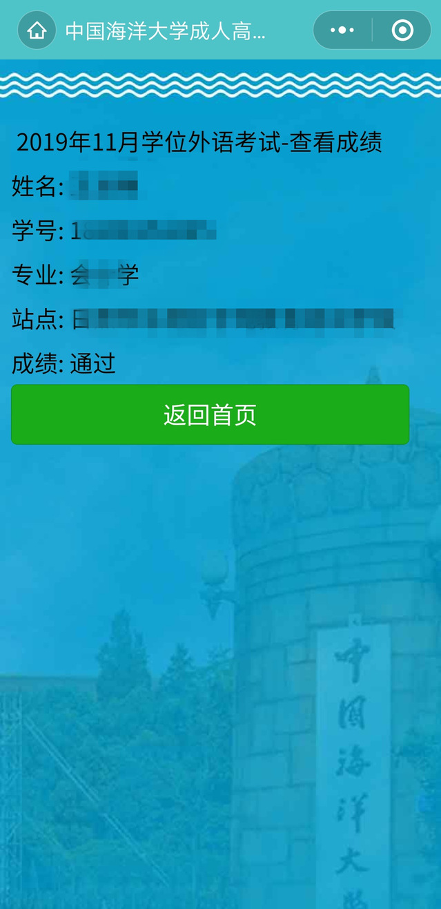 我校2019年11月9日学位外语考试已经结束,现将考试结果予以公布,请通过如下两种方式予以查询: