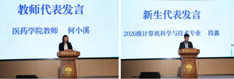 教师代表、医药学院何小溪老师以“空杯心态”相勉,承诺全体师者将以知行合一为引,做学子求学路上的坚实后盾。新生代表段鑫结合律师执业经历,以“守护知识产权创新,不仅需要法律条文的支撑,更需要跨学科的专业积淀”表达了再次回归大学校园的愿望,并倡议大家以归零之姿勤学善思,在AI时代突破自我、聚力成长。